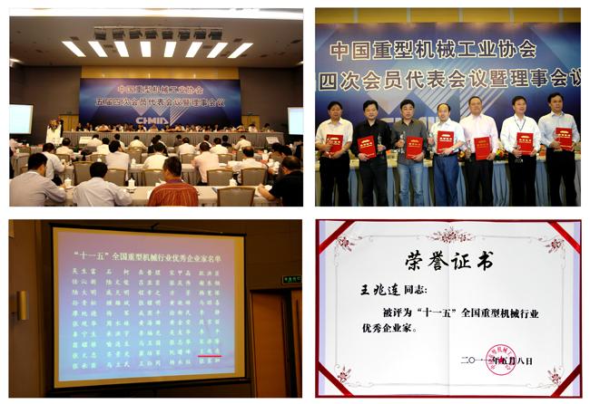 2011年5月8日~9日,中國重型機械工業(yè)協(xié)會五屆四次會員代表會議暨理事會議在北京鐵道大廈召開。表彰“十一五”期間為我國重型機械行業(yè)發(fā)展和科技進步做出突出貢獻的企業(yè)家是會議的主要內(nèi)容之一。中國第一重型機械集團公司總經(jīng)理吳生富和我公司董事長兼總經(jīng)理王兆連等50名同志被評為“十一五”全國重型機械行業(yè)優(yōu)秀企業(yè)家并受到大會表彰。
