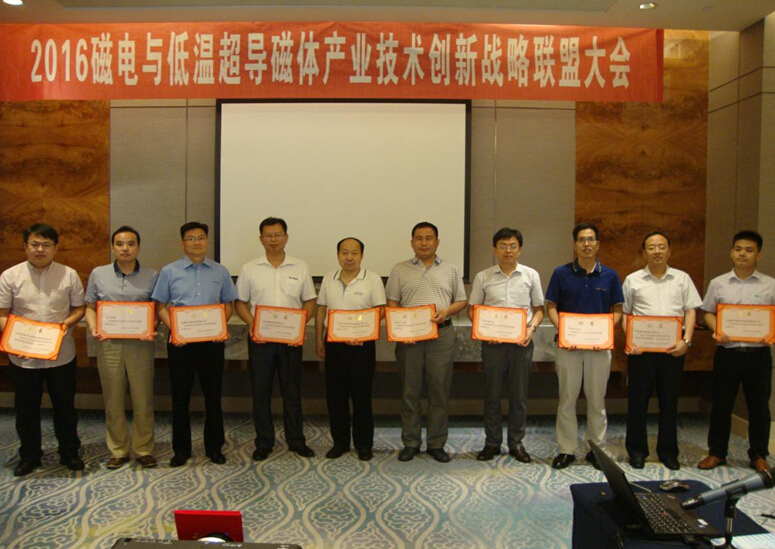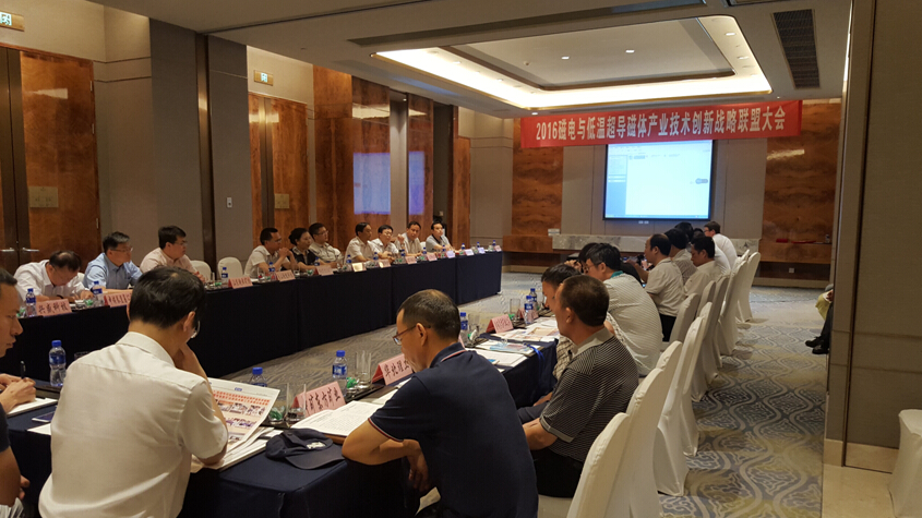 2016年6月22日,“磁電與低溫超導(dǎo)磁體應(yīng)用產(chǎn)業(yè)技術(shù)創(chuàng)新戰(zhàn)略聯(lián)盟”年會(huì)在河北唐山香格里拉大酒店隆重召開。本次年會(huì)特邀科技部政策法規(guī)司原副司長(zhǎng)李新男、中國(guó)重機(jī)協(xié)會(huì)洗選設(shè)備專委會(huì)秘書長(zhǎng)呂英凡、酒鋼集團(tuán)選燒廠葉傳勇科長(zhǎng)出席,以及來自聯(lián)盟單位的代表共60余人出席會(huì)議。會(huì)議由聯(lián)盟秘書長(zhǎng)、山東華特磁電科技股份有限公司常務(wù)副總劉風(fēng)亮主持。