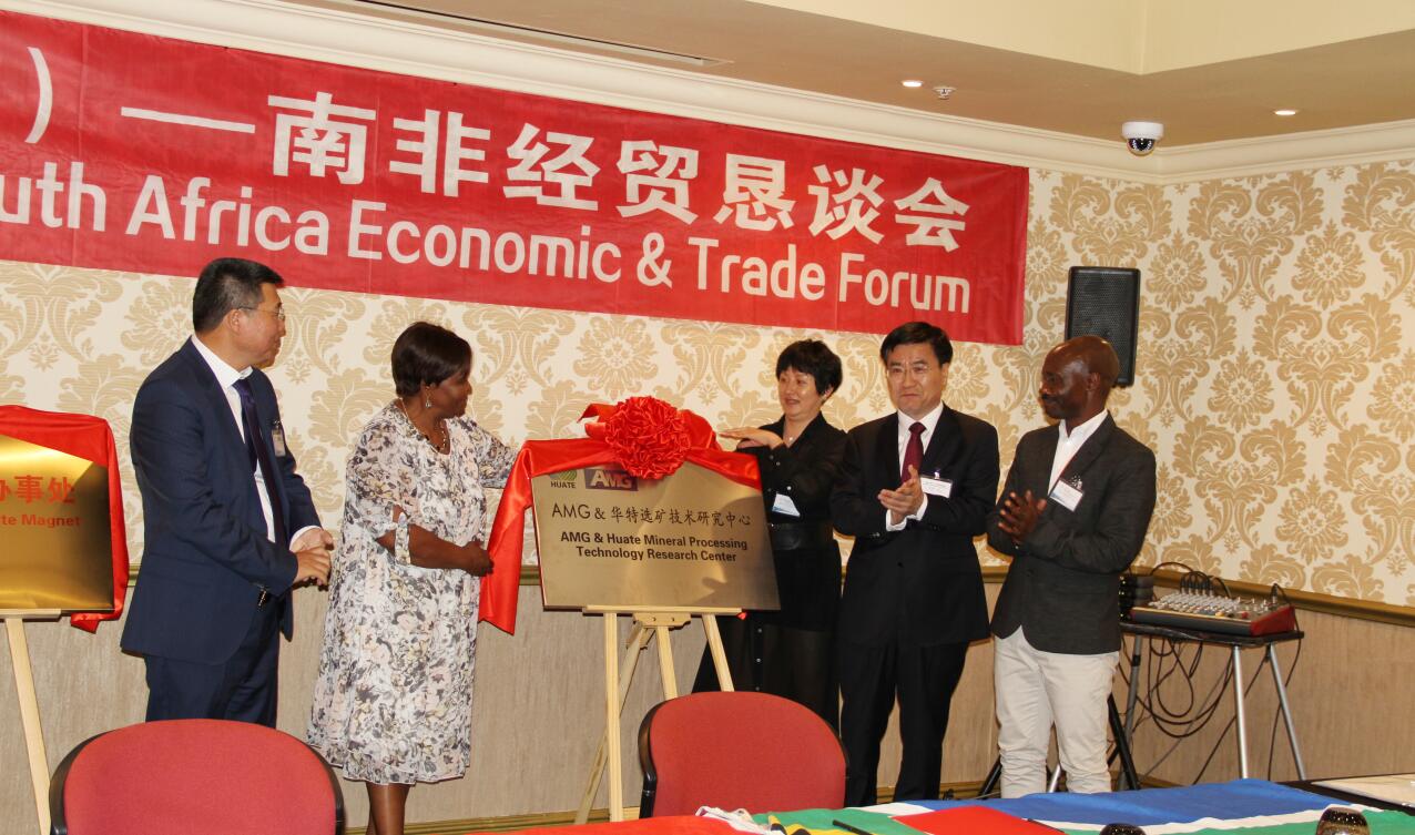 會議結(jié)束前,隆重舉行了華特公司與AMG集團進行了“聯(lián)合共建選礦技術(shù)中心”簽約儀式及“AMG--華特選礦技術(shù)研究中心”和“華特磁電南非辦事處”揭牌儀式三項活動。
