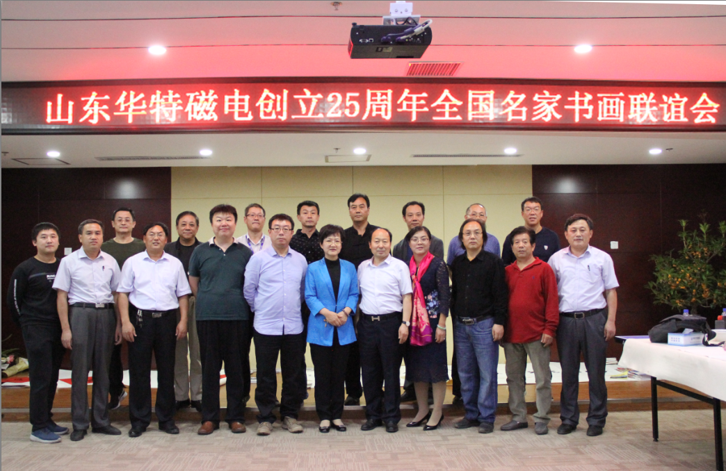 座談會上,王兆連董事長代表華特公司各位股東以及全體員工,向出席本次活動的各位領導以及書畫界的專家們表示熱烈歡迎。并表示,公司自1993年8月8日創立至今,歷經25年風霜雪雨,在各級黨委、政府的大力支持下,在社會各界的熱情幫助下,在全體員工的不懈努力下,取得了跨越式發展,由創業之初的一間辦公室、兩間茅草屋發展成為知名的磁電裝備制造業領軍企業。二十五年的艱辛歷程凝練出了華特特有的,具有旺盛生命力、務實、高效、團結的企業文化。此次聯誼會的成功舉辦,是各位書畫名家用精美作品向華特公司25周年華誕獻上的一份精神厚禮,這將作為慶?!叭A特創立25周年”宣傳紀念活動的重要組成部分,在公司創新發展歷程上留下濃墨重彩的一筆。今天有幸借此機會,同所有的書畫愛好者們,一起分享各位德藝雙馨的書畫藝術家帶來的全新視覺體驗,領略藝術美的韻味,感受傳統文化的魅力!