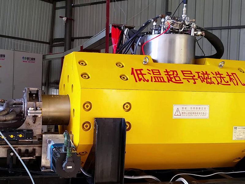 ◆背景磁場強度高,低溫超導磁選機采用Nb-Ti超導材料制作的線圈,磁場強度達到5.5T。而常導磁體場強一般小于2T,低溫超導磁選機是其2~5倍。